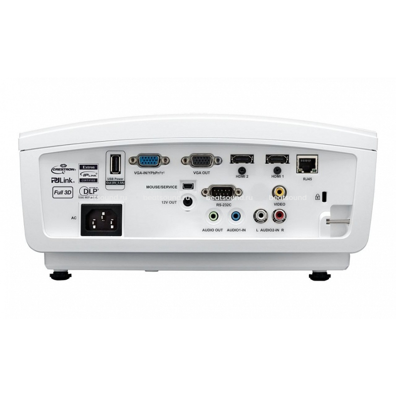 В проекторе предусмотрен широкий набор коммуникационных интерфейсов и управление по сетевому протоколу (поддержка Crestron Roomview, Telnet, Extron IP Link, AMX dynamic device discovery и PJ-Link).