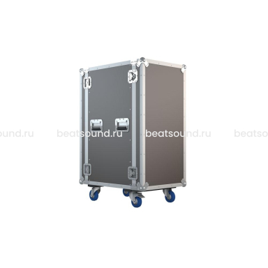Рэковый кейс 22U, глубина 550мм, DIN рейка с 2-х сторон, ламинированная фанера 9мм, с колесами d100мм, 2-а колеса с тормозом