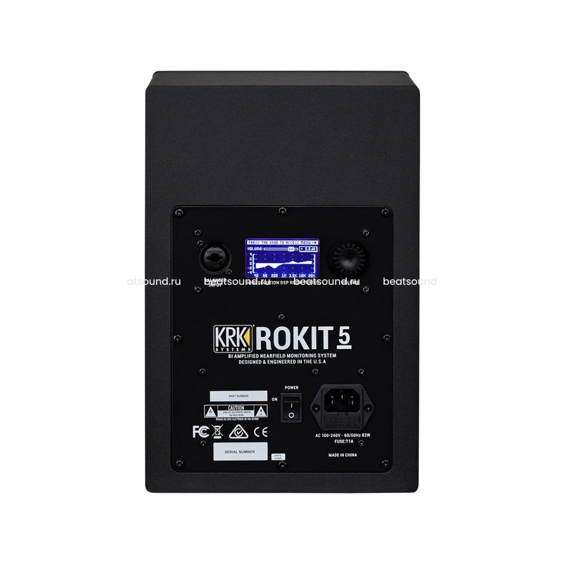 KRK RP5G4 – высокопроизводительный активный двухполосный студийный монитор профессионального уровня из линейки оборудования ROKIT четвертого поколения. Мощность представленной модели – 55 Ватт. 5-дюймовый кевларовый низкочастотный драйвер и 1-дюймовый твитер обеспечивают целостность звуковой картины, чистый, четкий, отлично детализированный звук. Максимальный уровень звукового давления – 104 дБ. Модель оснащена надежным усилителем мощности класса D новейшей разработки. Лимитер Brickwall защищает систему от перегрузок. Возможности коммутации предусматривают комбо-джеки TRS/XLR. Для удобства регулировки параметров звука с учетом акустических особенностей помещения на задней панели предусмотрен контрастный жидкокристаллический экран с визуализацией эквалайзера. При нажатии на регулятор громкости на дисплее отображается меню с выбором из 25 предустановок, можно также создавать собственные настройки. Производитель также предлагает специальное приложение для мобильных устройств «KRK Audio Tools» с широкими возможностями управления.