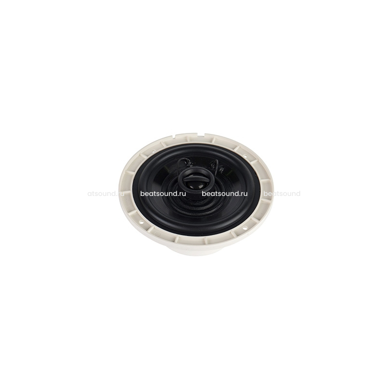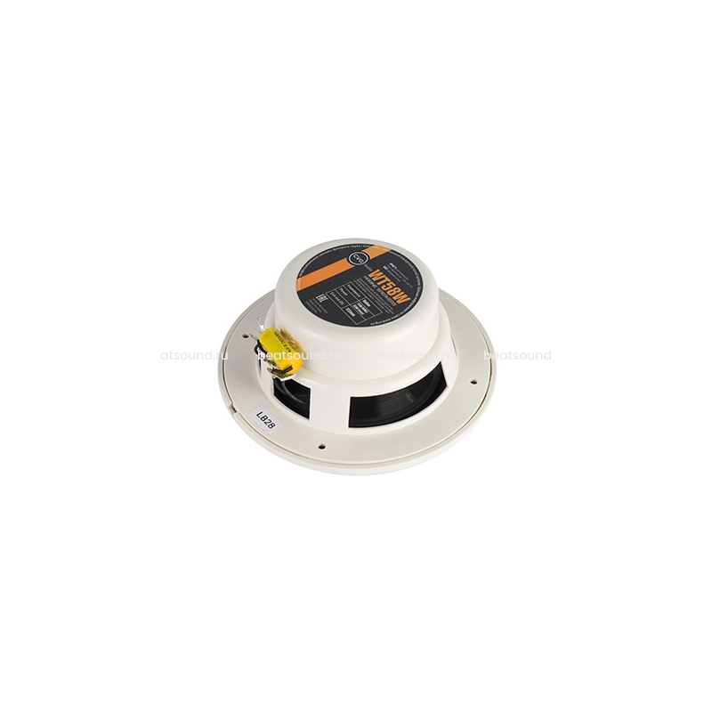 CVGaudio WT58W – двухполосная акустическая система. Вуфер (низкочастотный динамик) изготовлен из специального термостойкого синтетического материала и имеет размер 5,25” (133,5mm). Твиттер имеет размер 0,75” (19mm), и также изготовлен из термостойкой полимерной пленки. Мощность акустической системы – 20W(RMS) / 30W(max). Акустическая система предназначена для работы совместно с low-impedance усилителем, номинальное сопротивление данной модели – 8ohm. Для подключения к 100V линии можно использовать опциональный понижающий трансформатор, например CVGaudio TOD-20 или T-20/8 (трансформаторы должны быть вынесены из влажных помещений и помещений с высокой температурой). Подключение спикерного кабеля, приходящего от усилителя, производится с помощью пайки или надевающихся на выходные клеммы динамика специальных клеммных терминалов (не входит в комплект поставки). Для установки CVGaudio WT58W необходимо подготовить отверстие диаметром 120mm. Полость за лицевой плоскостью стены / потолка должна быть не меньше 70mm. Корпус данной модели изготовлен из жаропрочного ABC пластика светло-кремового цвета. Лицевая часть корпуса съемная (фиксация на защелках). Для крепления в потолок / стену используются четыре самореза (не входят в комплект поставки). Не смотря на небольшой размер, акустические системы CVGaudio WT58W имеет очень комфортное и качественное звучание. Модель может быть рекомендована как для трансляции музыкального фона в специфических помещениях с высокой температурой и влажностью в рамках коммерческих и профессиональных инсталляций, так и для установки в частных апартаментах и коттеджах.