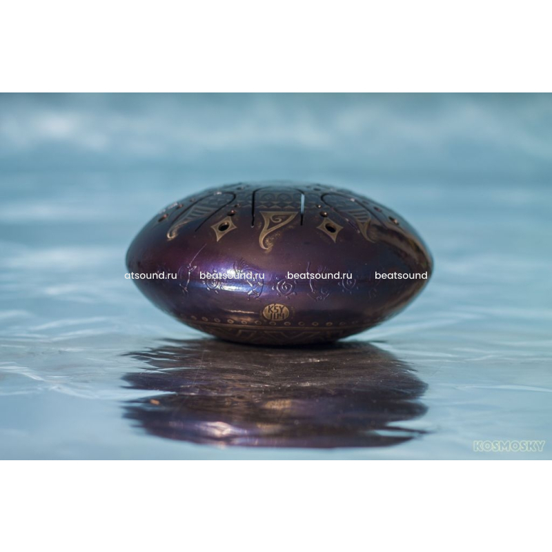 Звук у глюкофона - мелодичный и звонкий. Тонкий металл корпуса позволяет мастеру настроить чистые и высокие ноты. Благодаря небольшому размеру и весу инструмента, его легко брать с собой на природу, прогулку или в путешествие. Играть на глюкофоне можно пальцами или палочками с мягкими наконечниками. Цвет серо-сине-фиолетовый