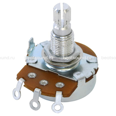 В комплекте с потенциометром идут 1 гайка и 1 шайба. Диаметр штока потенциометров 8 мм. Длина резьбовой части - 10 мм, длина штока - 20 мм.