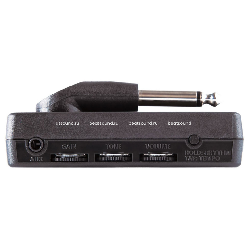 Встроенный джек amPlug подключается напрямую в выход инструмента. Угол джека регулируется, что обеспечивает совместимость с любым профилем корпуса и ориентацией гнезда. Вход AUX позволяет подключить источник музыки или ритм-трека. Остается только подключить наушники к выходу с эмуляцией кабинета и играть.