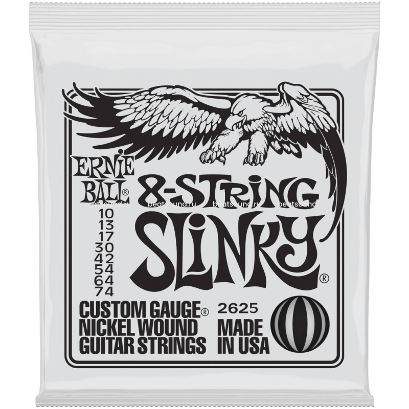ПроизводительERNIE BALLВес (брутто) кг.0.1Длина (м.)0.12Ширина (м.)0.12Высота (м.)0.05Количество струн8Калибр10-74Материал обмоткиНикель -