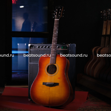Модель выполнена в корпусе Dreadnought и отличается сбалансированным и объемным звучанием с мощными басами, выпуклыми средними частотами и сильными, чистыми верхними нотами.
