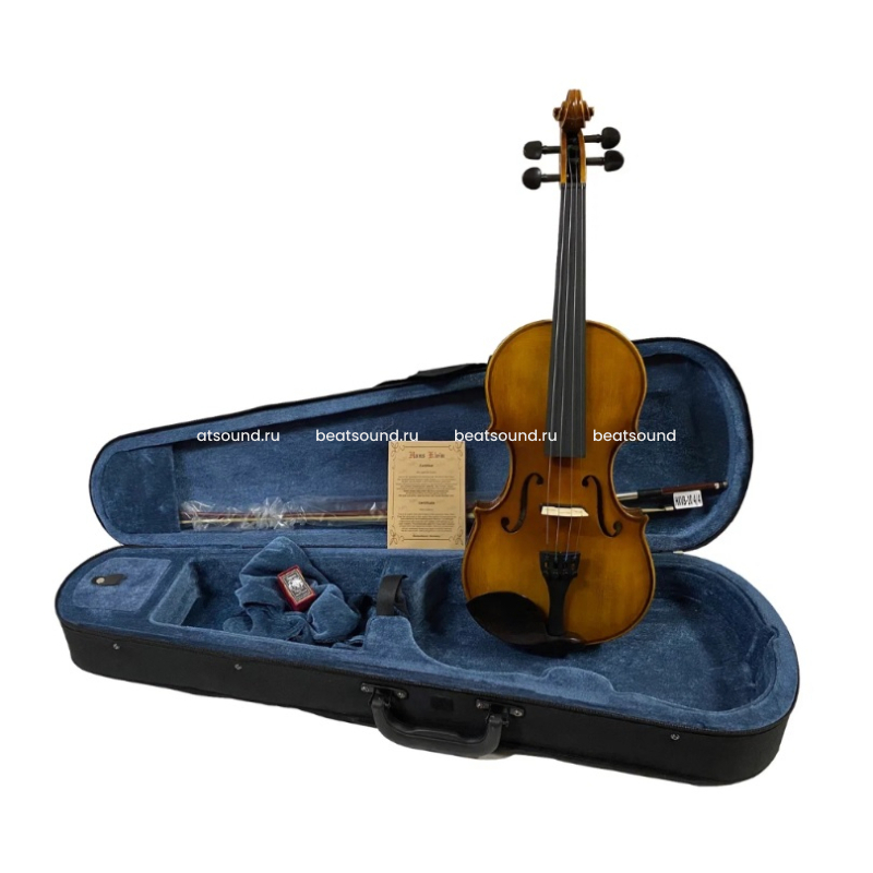 Комплект - КЕЙС + СМЫЧОК + КАНИФОЛЬ, верхняя дека - резонансная германская ель, нижняя дека и обечайки - волнистый клён, фурнитура - чёрное дерево (EBONY), струнодержатель с 4-мя машинками микроподстройки, покрытие - матовый лак (Германия) Читать подробнее -