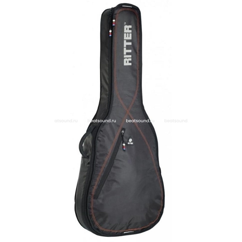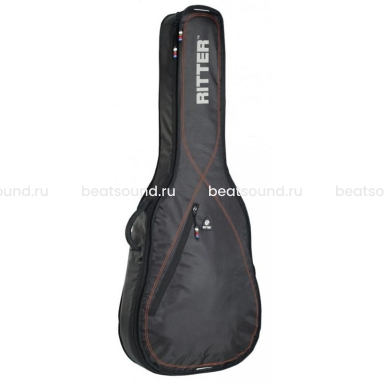 Чехол для электрогитары RITTER RGP2-E/BRD защитное полужесткое уплотнение 10мм, Материал: 100% полиэстер, карман А4, ручки, рюкзачные лямки, светоотражающая надпись RITTER. Встроенная доп. защита в районе порожка и головки грифа. Цвет: чёрный с красной прострочкой
