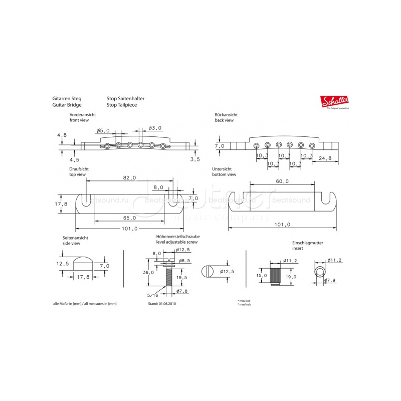 12050200 (49061) Stop Tailpiece CH Бридж (струнодержатель) для электрогитары с стоп-баром покрытие Хром, вес 122 гр., размеры 101x17x12 мм SCHALLER Читать подробнее