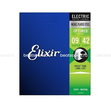 19002 Optiweb Комплект струн для электрогитары, никелированная сталь, Super light 9-42, Elixir Читать подробнее