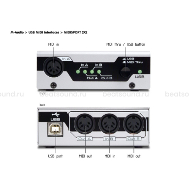 Работает как на платформах PC, так и на Macintosh. Если вы используете более чем одно MIDI-устройство, будь то вторая клавиатура или дополнительный звуковой модуль, Midisport 2×2 идеально подойдет для данной конфигурации. При установке устройство не требует ни отдельных IRQ, DMA, ни диапазона адресов ввода/вывода. Для увеличения числа MIDI каналов возможен вариант подключения нескольких Midisport 2×2 к различным портам USB. Midisport 2×2 имеет индикаторы MIDI In & Out, не требует отдельного источника питания. Режим MIDI Thru позволяет пользоваться MIDI-устройствами через Midisport 2×2 даже при выключенном компьютере.