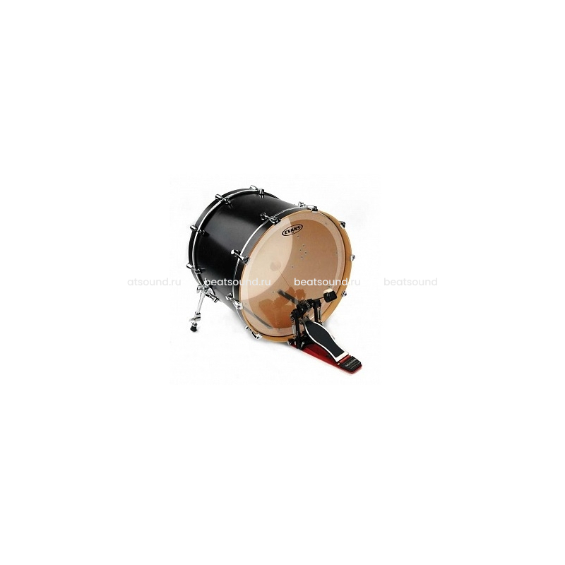 Однослойный прозрачный пластик для бас-барабана 20" с внутренним кольцом контроля обертонов и съемным глушащим кольцом для оптимального звучания удара без ущерба для нижних частот.