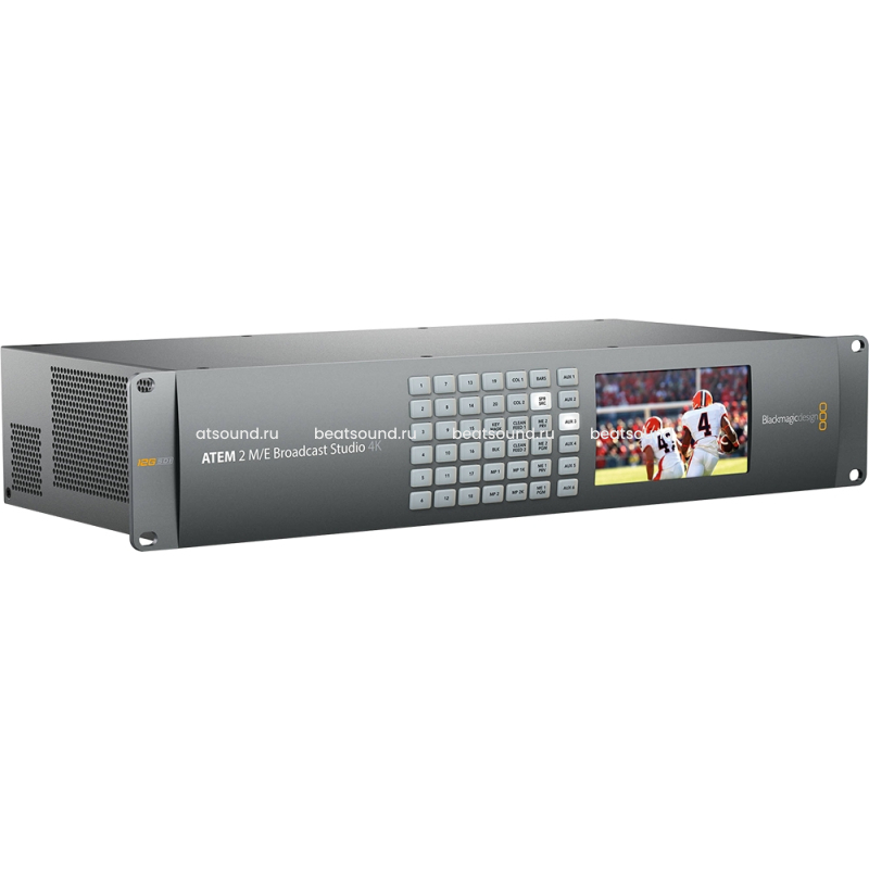 Современный эфирный видеомикшер имеет 20 разъемов 12G-SDI с повторной синхронизацией на каждом входе, позволяя работать с форматами от 720p, 1080i и 1080p до 2160p/60. Функционал включает емкую библиотеку мультимедиа, четыре медиаплеера, два выхода для многооконного мониторинга в Ultra HD, процессор цифровых видеоэффектов, режим SuperSource, шесть модулей кеинга, звуковой блок, шесть дополнительных выходов, поддержку управления камерами и программную панель. Возможно подключение аппаратной панели Blackmagic. Модель ATEM 2 M/E Broadcast Studio 4K идеально подходит для прямой трансляции спортивных соревнований в HD и Ultra HD. Интерфейс 12G-SDI обеспечивает полную совместимость с существующим HD-SDI-, 3G-SDI- и 6G-SDI-оборудованием.